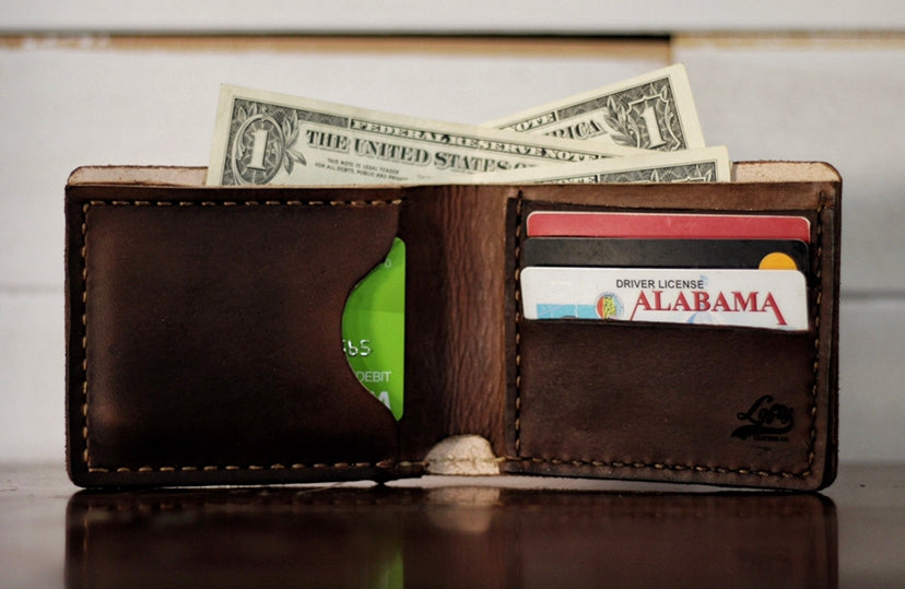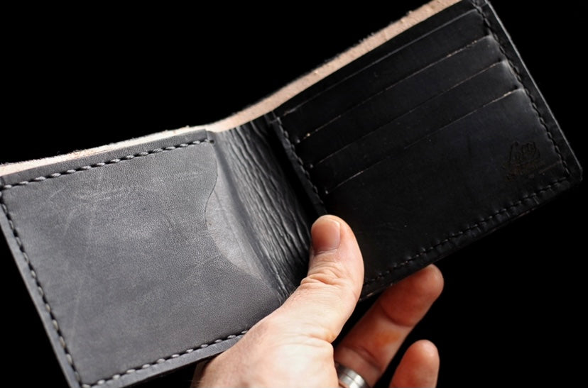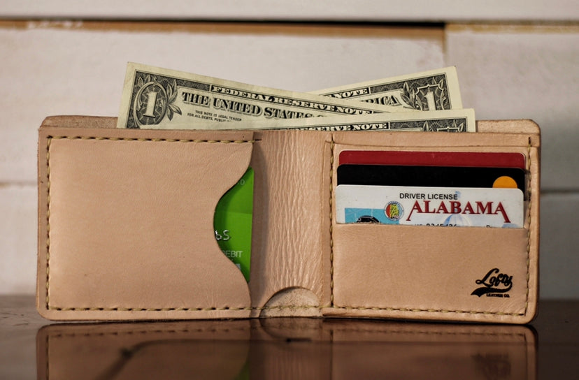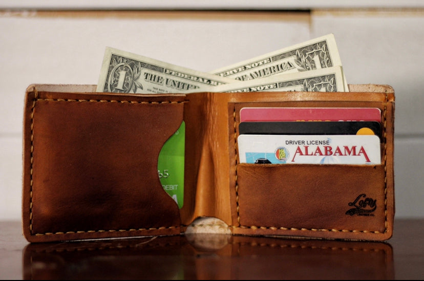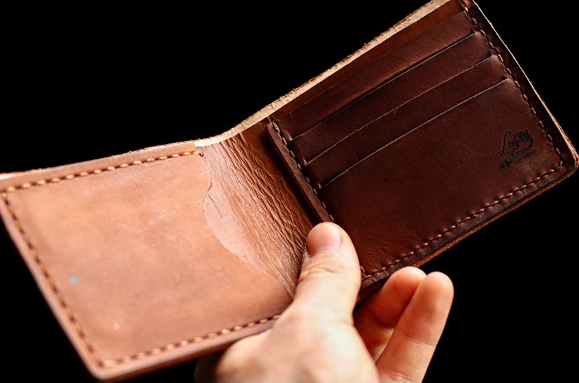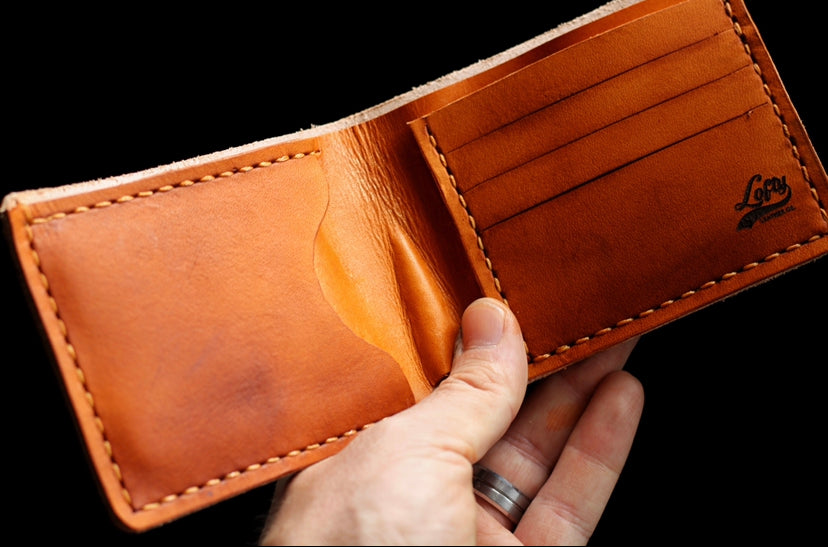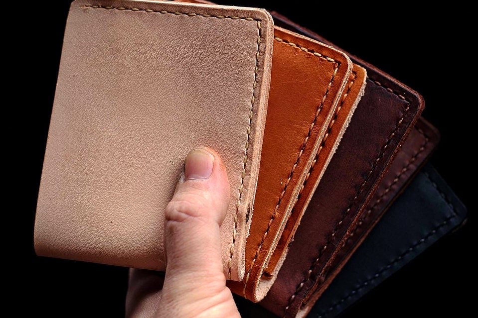 Most wallets you will see in stores are made from faux leathers and begin to fall apart quickly, but not this wallet. This wallet is made from high quality genuine vegetable tanned leather that only gets better with age. Vegetable tanned leather is well known for its durability and its rich patina. Additionally, our wallets are hand stitched with thick wax coated thread for a superior constructed product. As you use this wallet you will find that it will age beautifully and will stand the test of time.