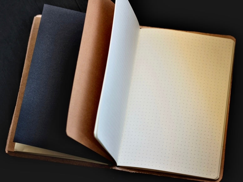 The Travelers journal is perfect for keeping your life organized. Each Traveler comes with journal inserts that can be easily removed for use and slid back into place for on the go. These inserts include blank, lined, and dot grid pages. So whether you are sketching designs, taking notes, or making lists, The Traveler has it all.